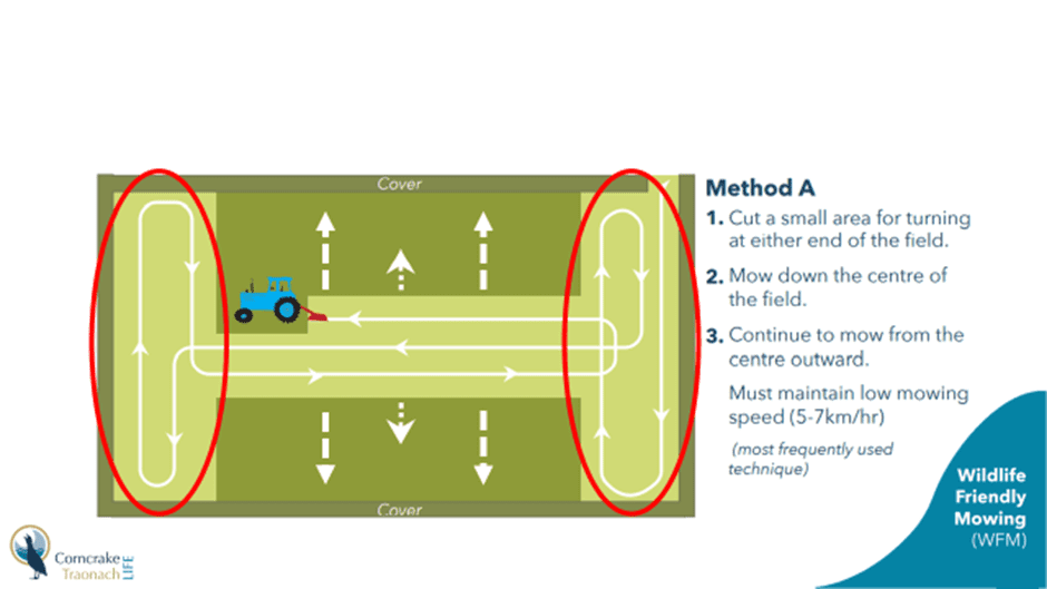 The farmers and contractors continue to do excellent work by mowing fields from the centre out. This reduces the chance of the small chicks and other mammals being killed by 60%.